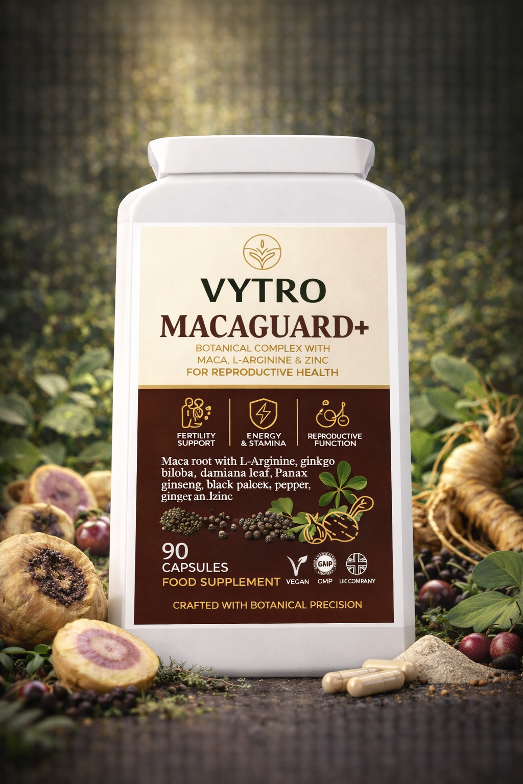 VYTRO MACAGUARD+ – Advanced Male Vitality & Reproductive Support | Maca Root, L-Arginine, Ginseng, Zinc & Damiana Complex