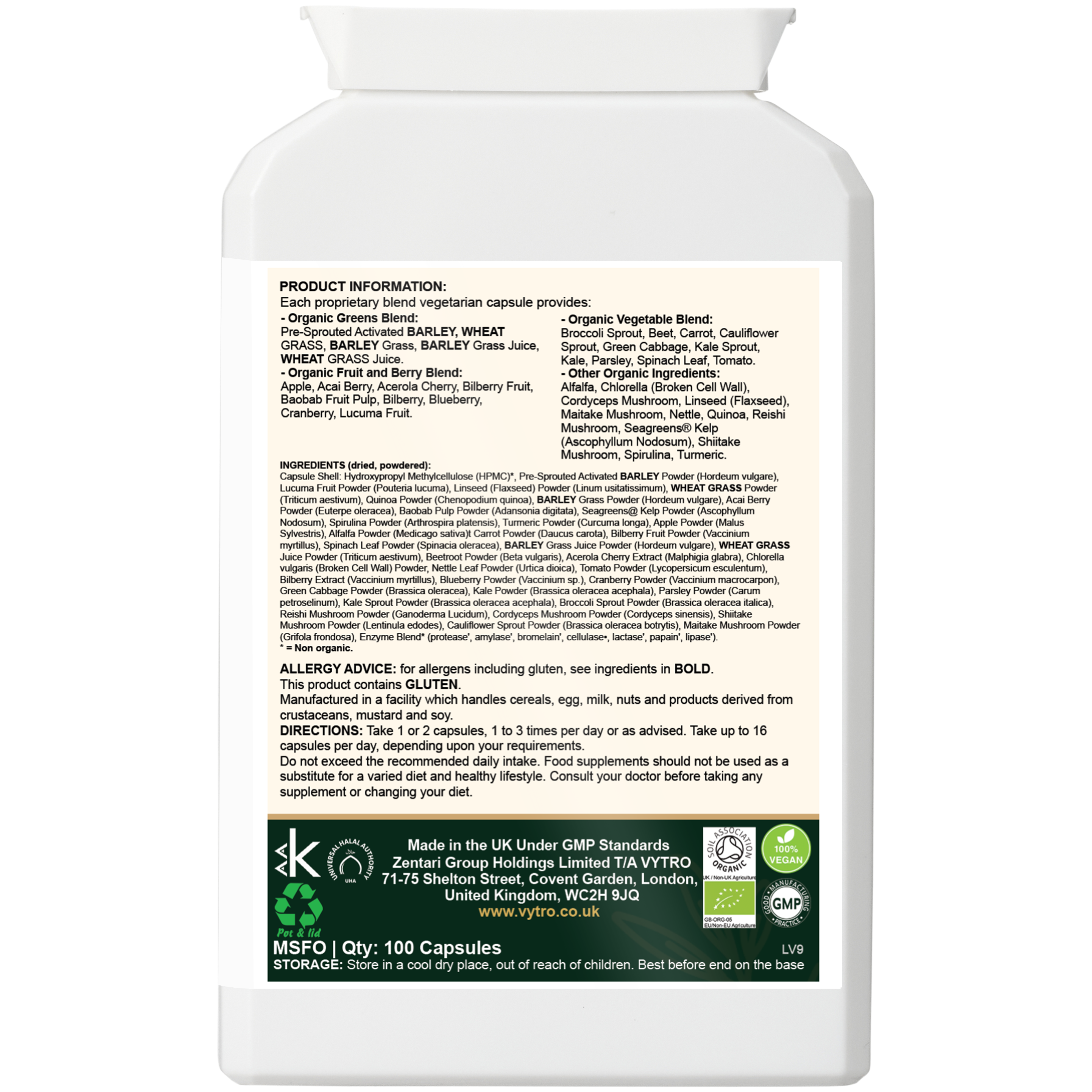 VYTRO® ALKALIGREEN+ Organic Super Greens Complex – Spirulina, Chlorella & Kale | Alkalising Energy & Detox Support