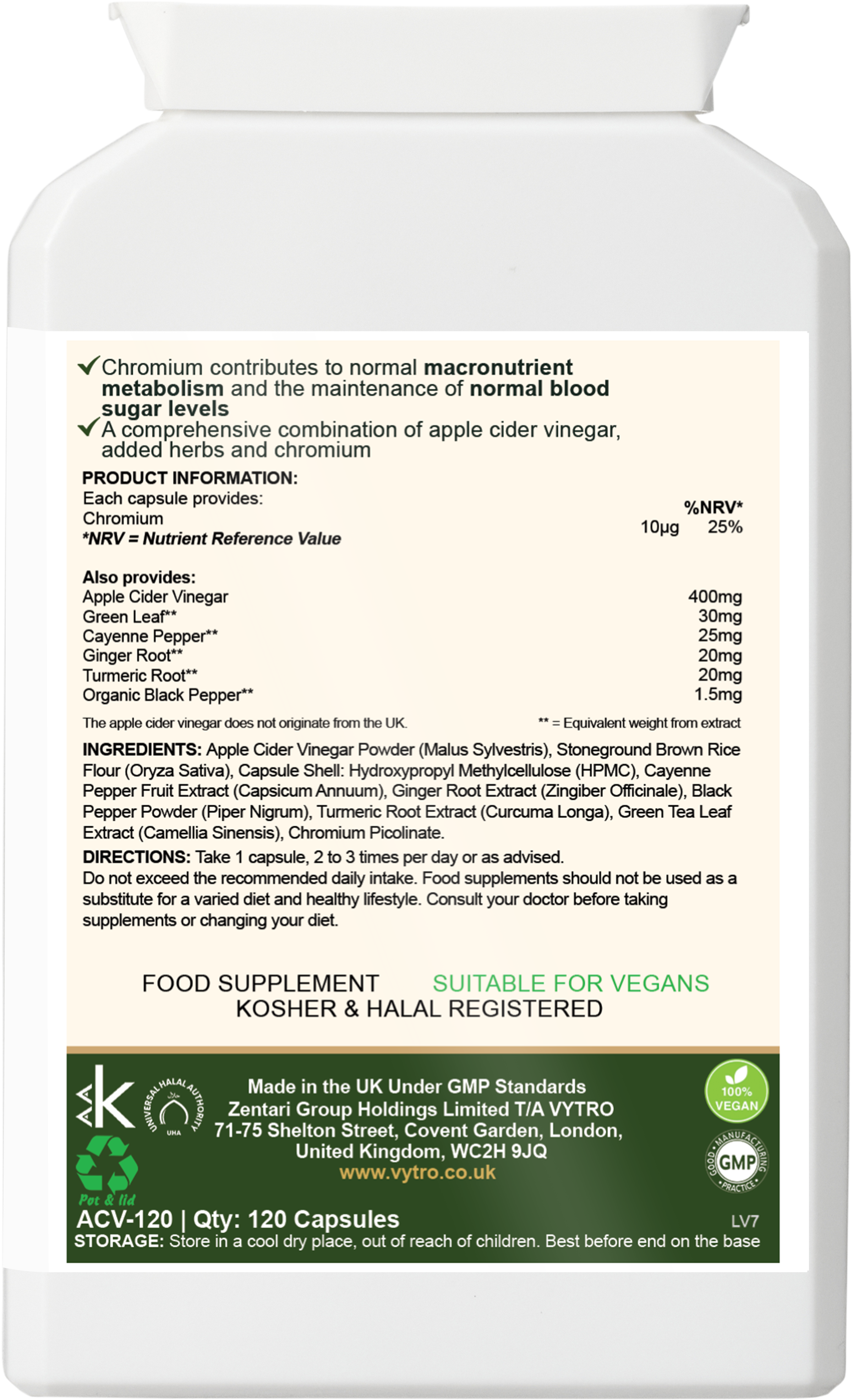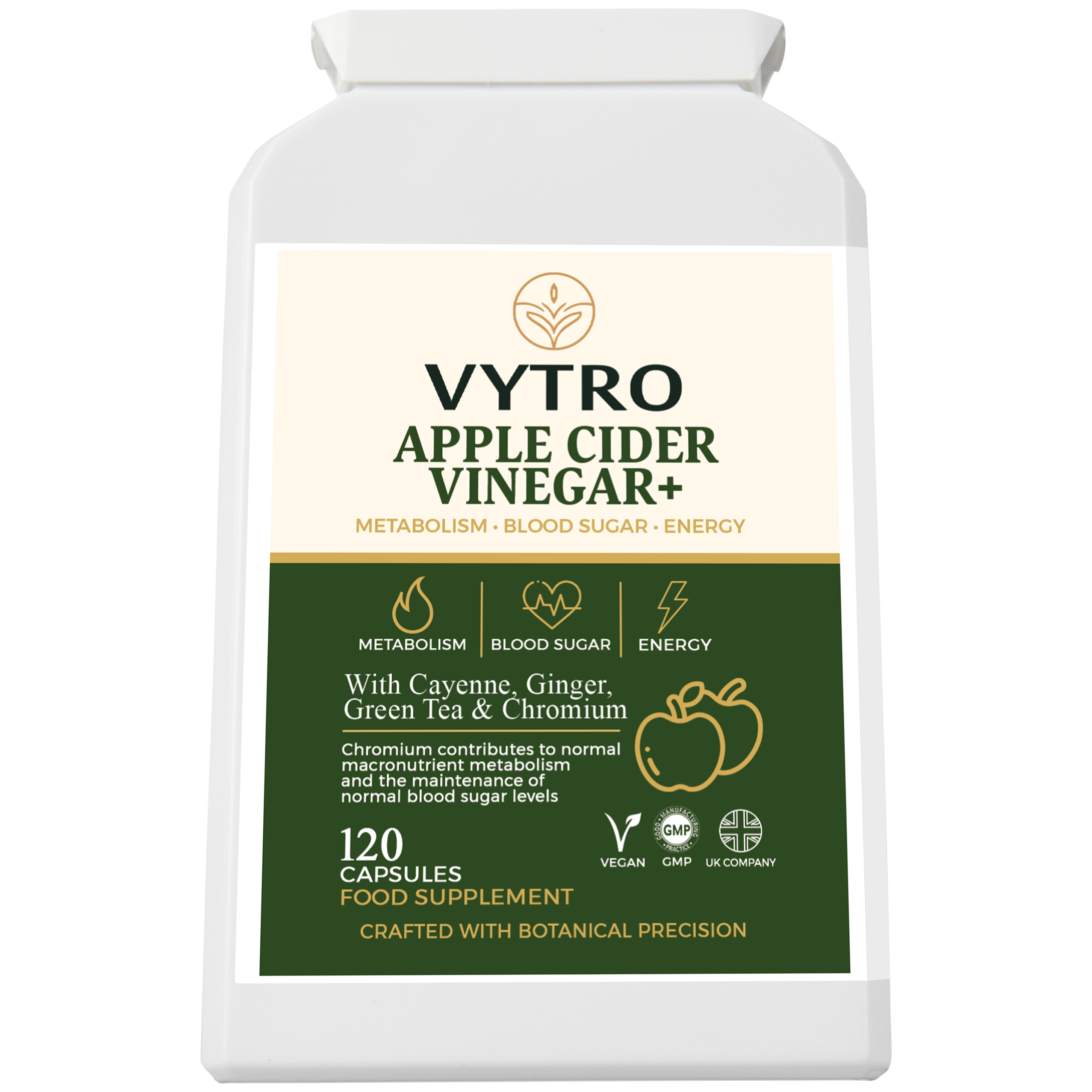 VYTRO® APPLE CIDER VINEGAR+ – Metabolism, Blood Sugar & Energy Support | With Cayenne, Ginger, Green Tea & Chromium | Vegan Capsules
