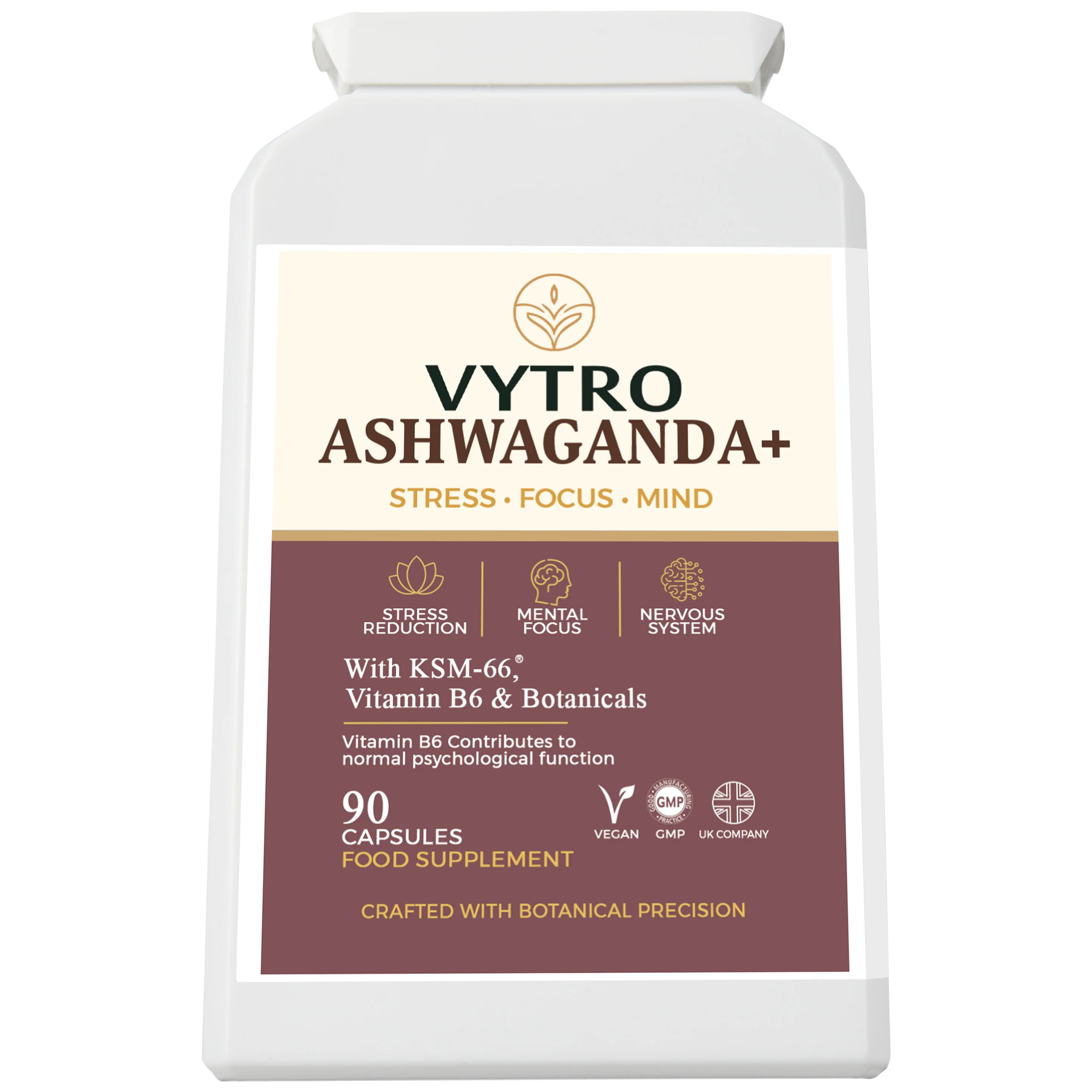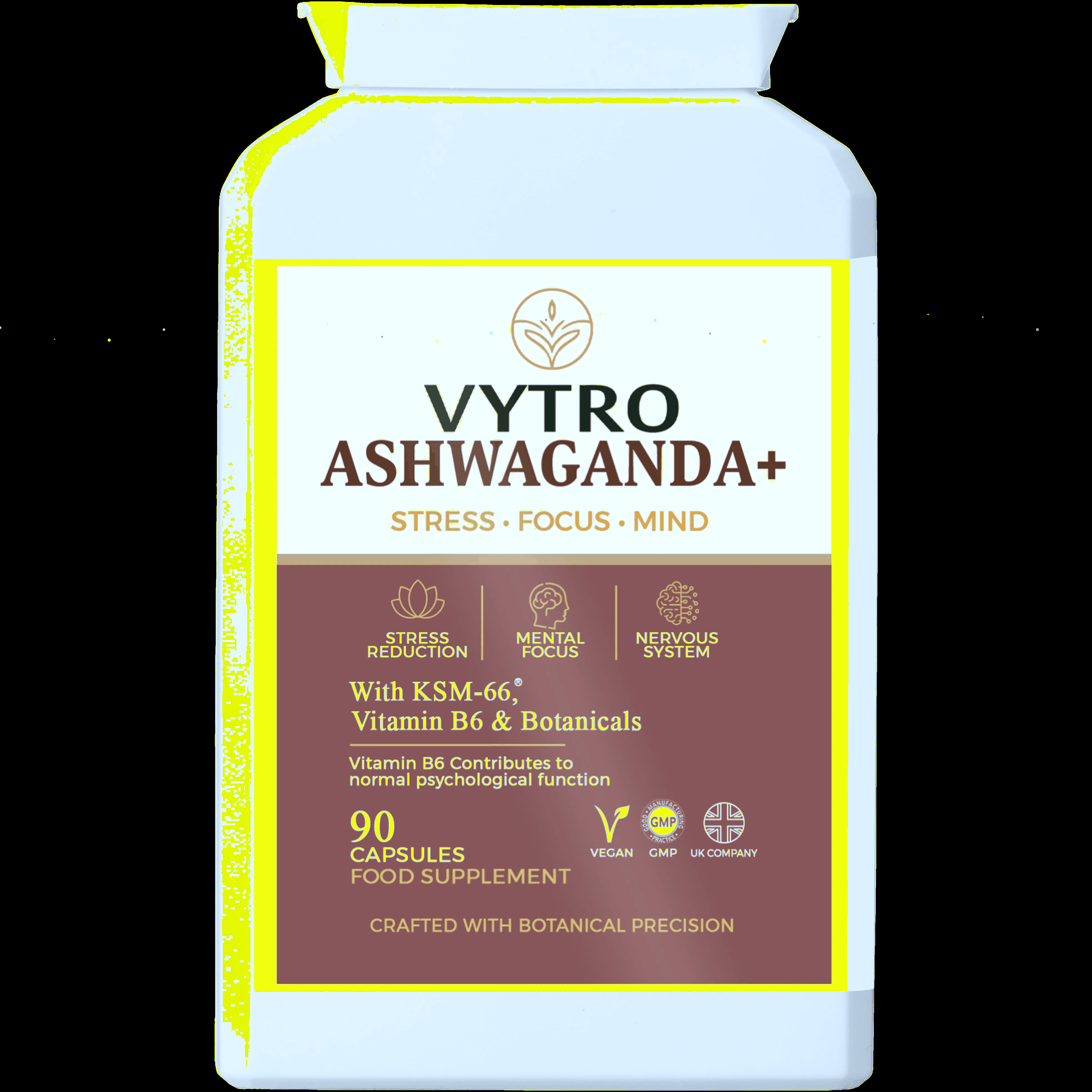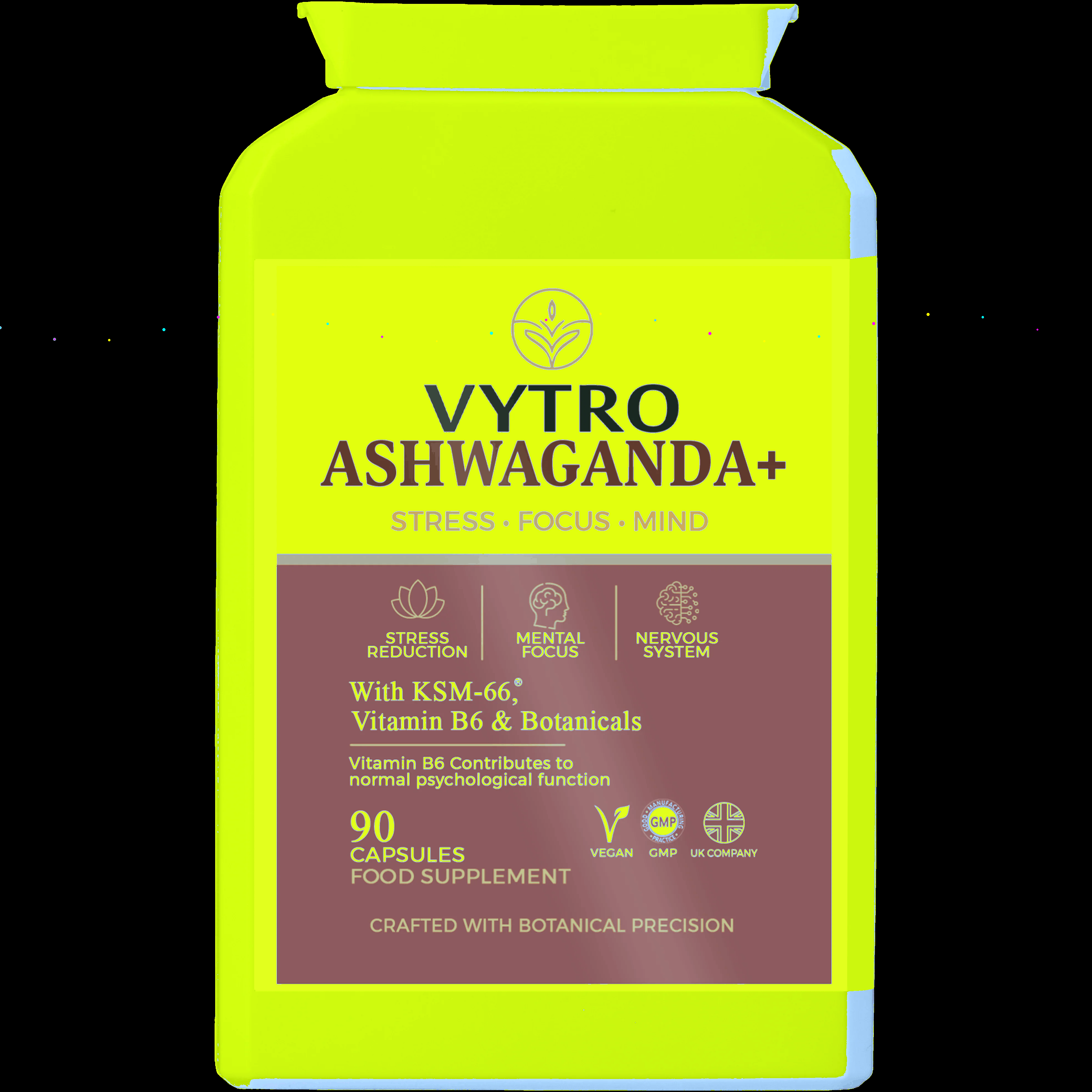 VYTRO ASHWAGANDHA+ Premium Adaptogen Complex – 90 Vegan Capsules | Stress, Energy & Focus Support