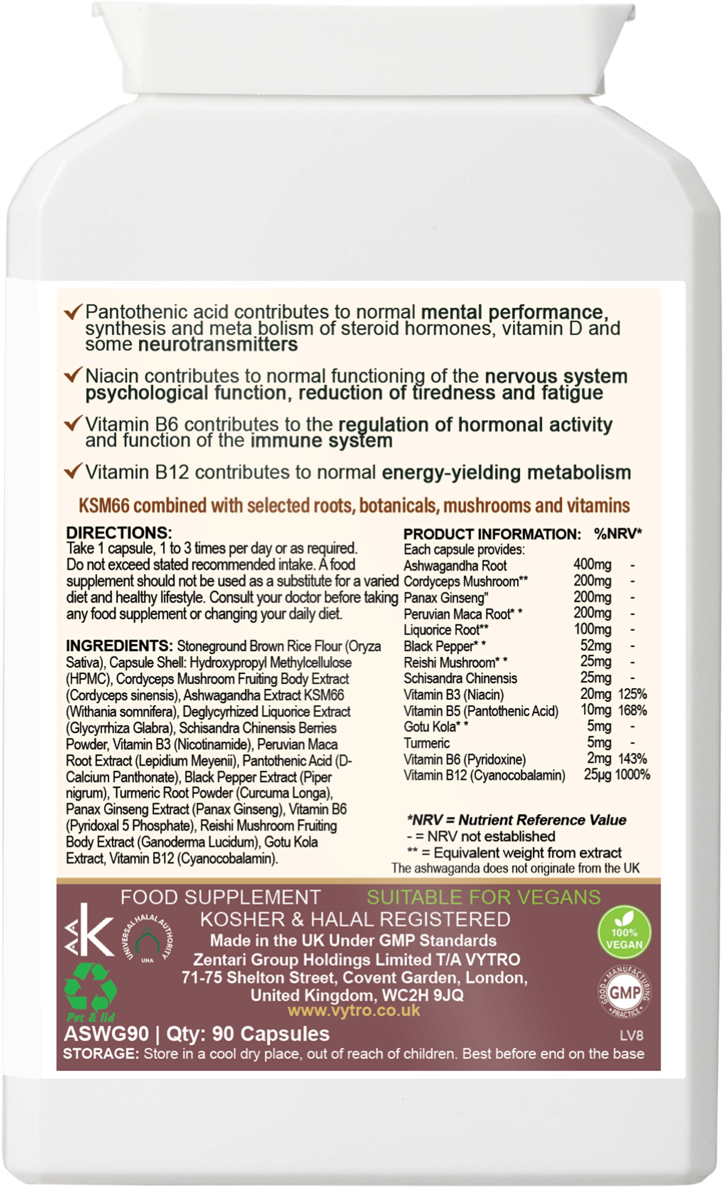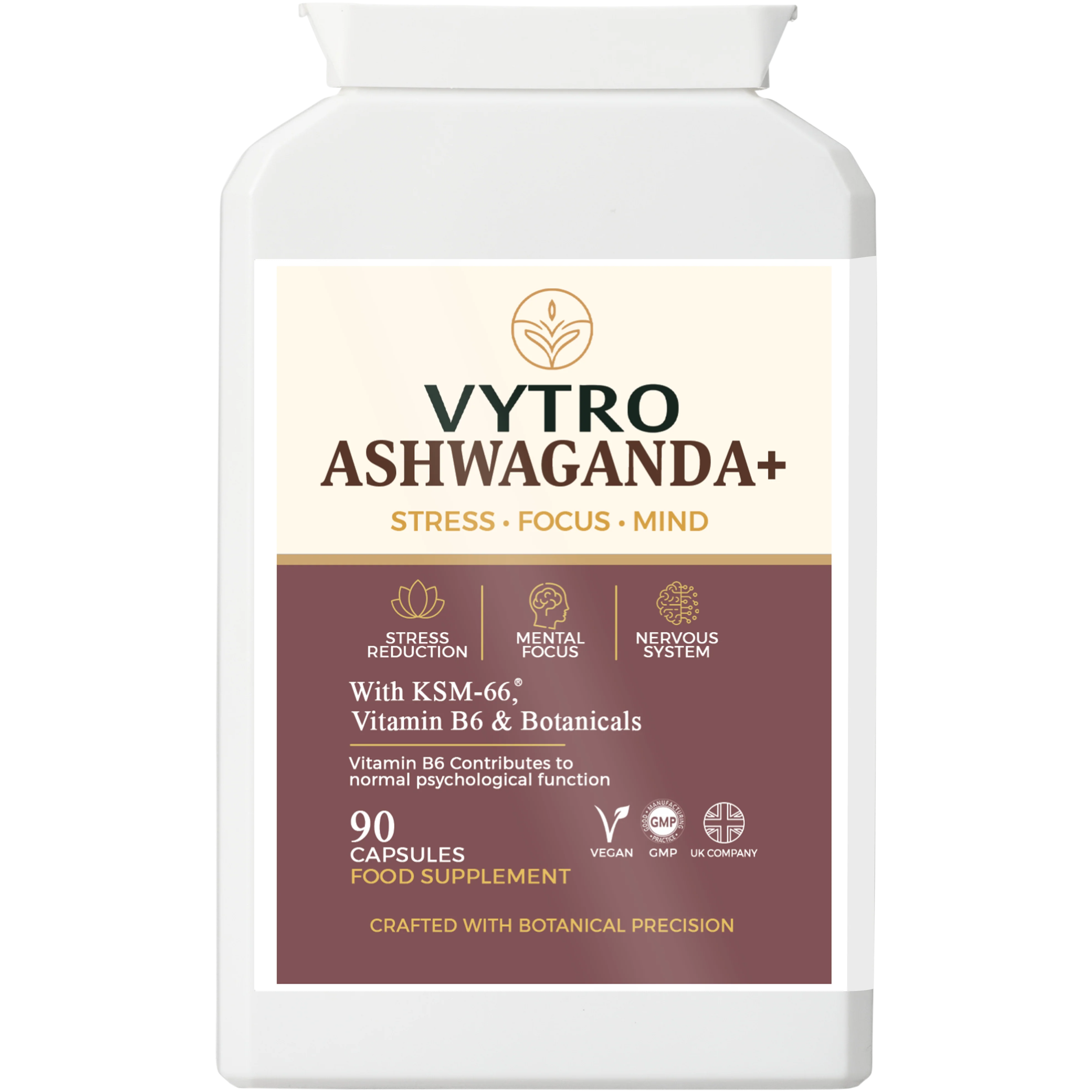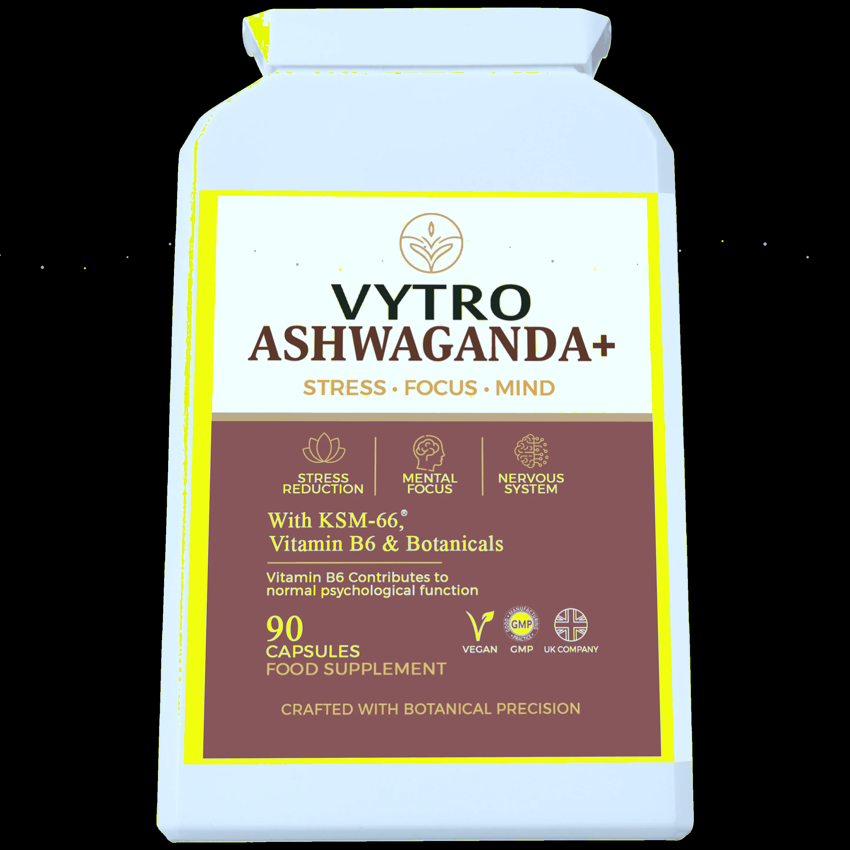 VYTRO ASHWAGANDHA+ Premium Adaptogen Complex – 90 Vegan Capsules | Stress, Energy & Focus Support