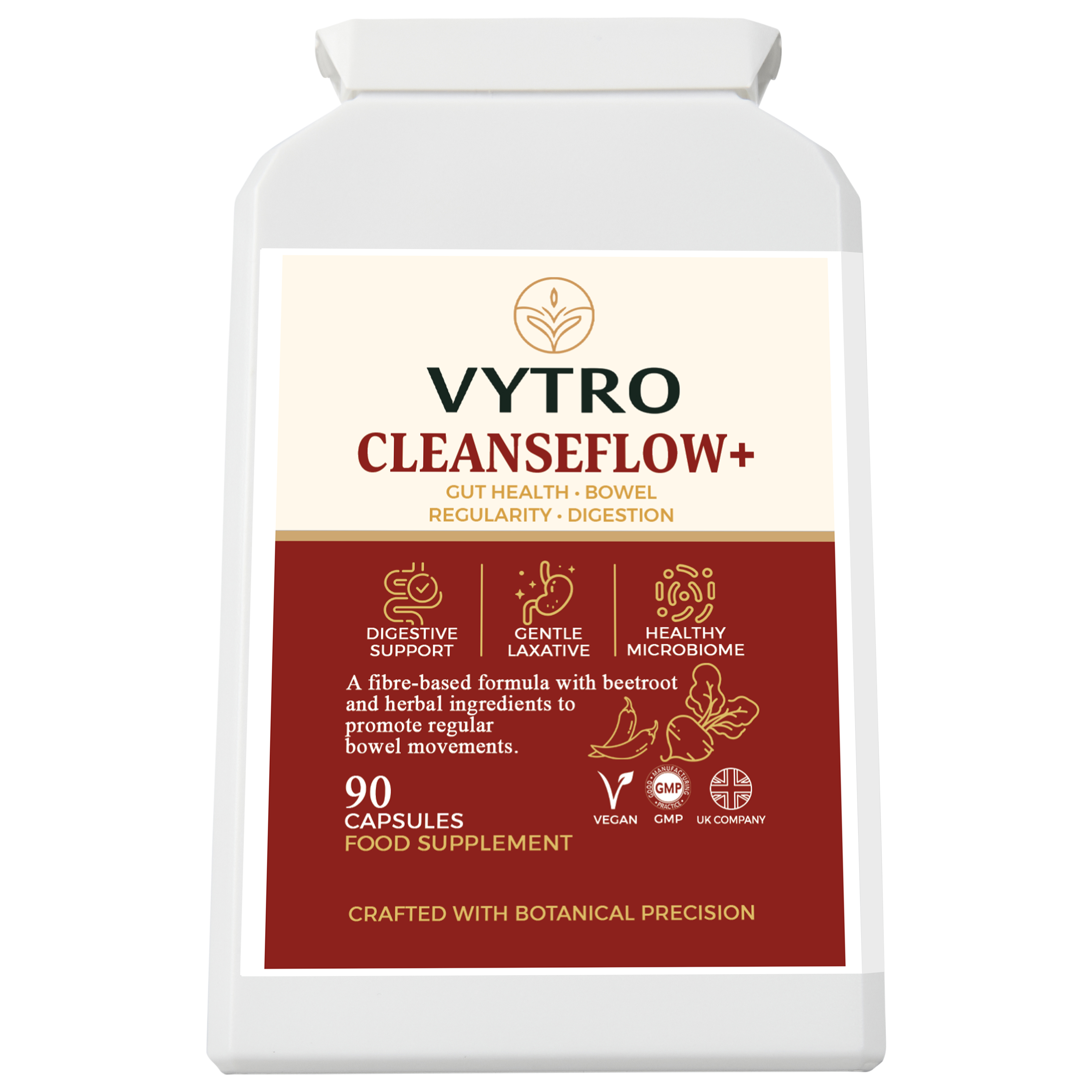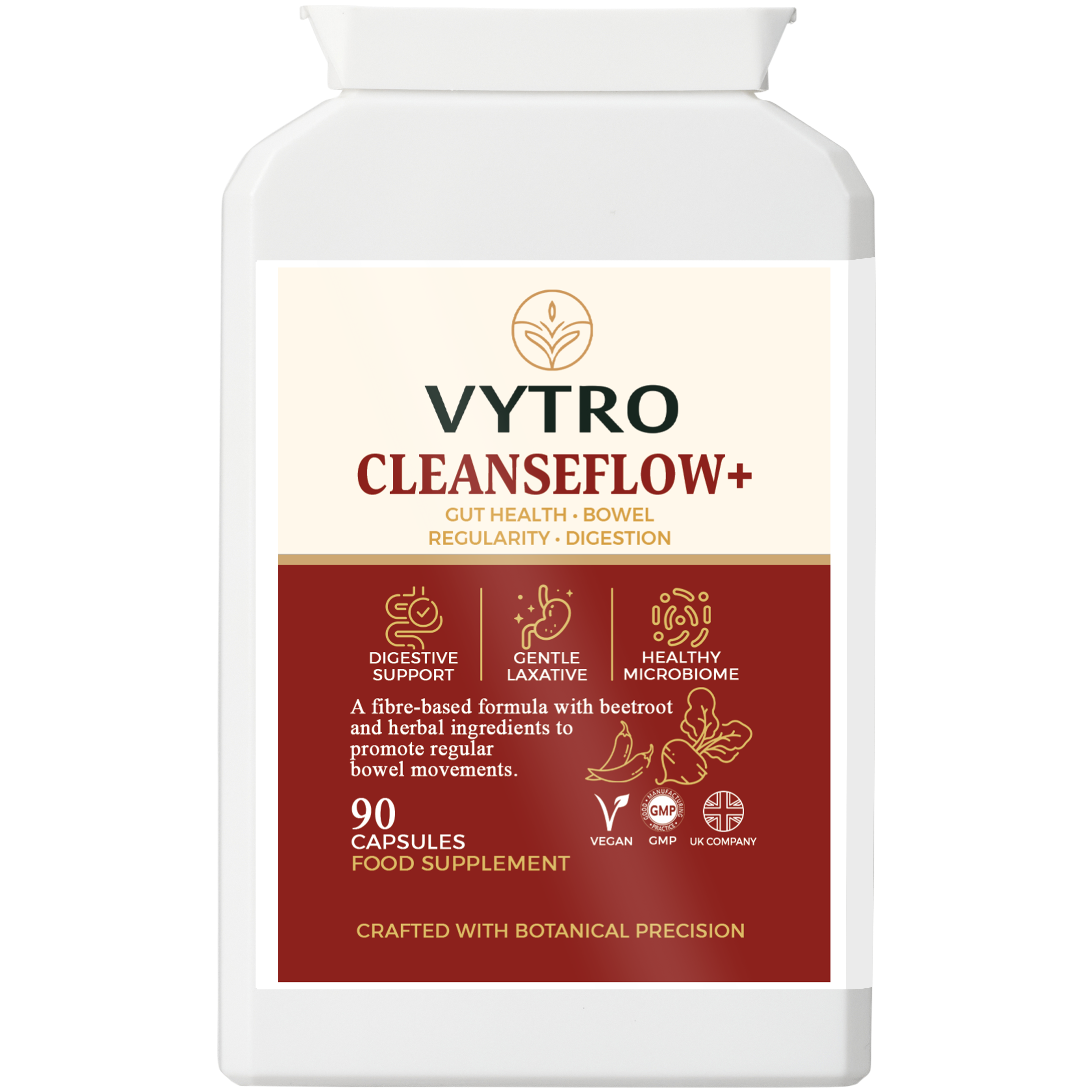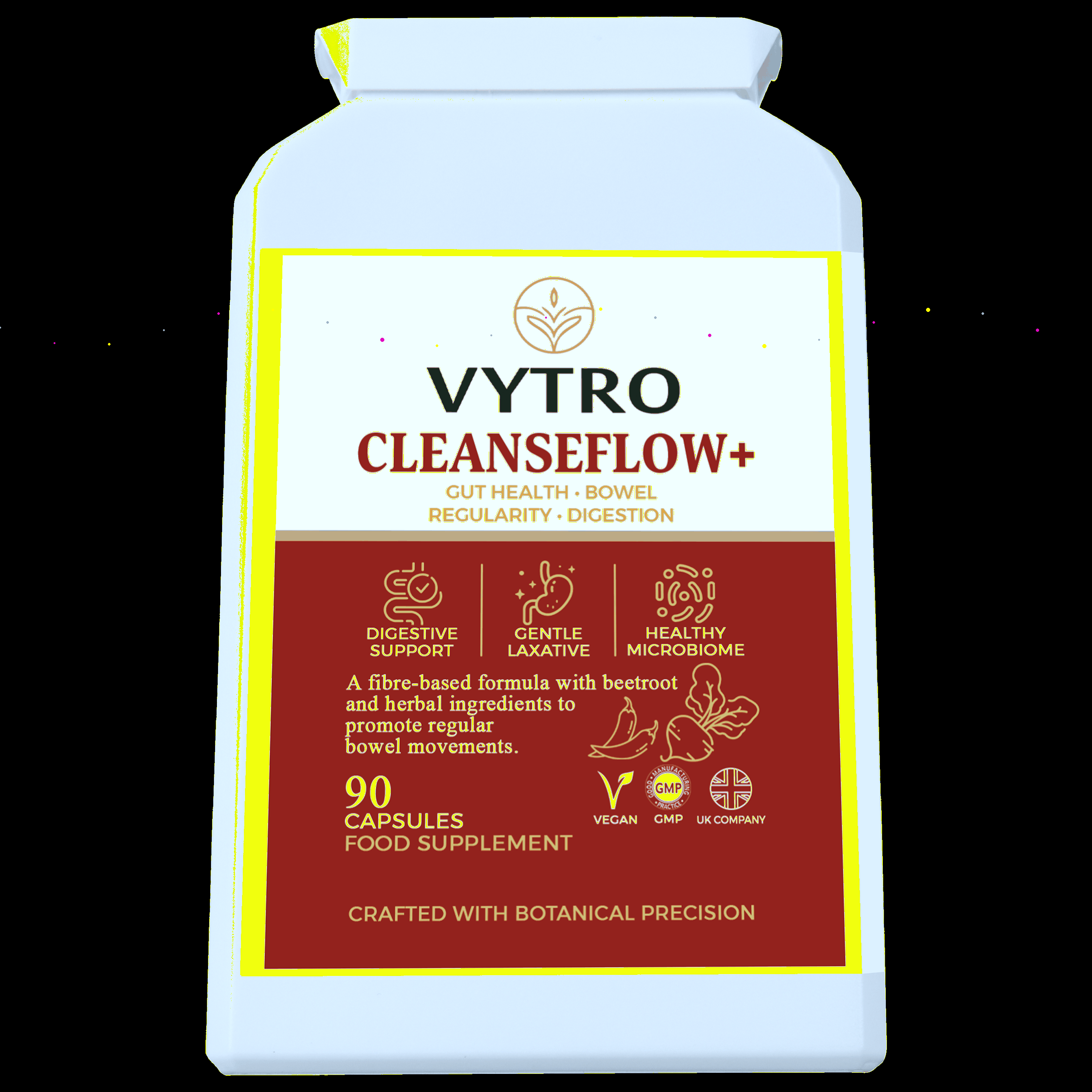 🌿 VYTRO CLEANSEFLOW+ is a fibre-rich botanical blend formulated to gently cleanse, tone, and support the intestinal tract.