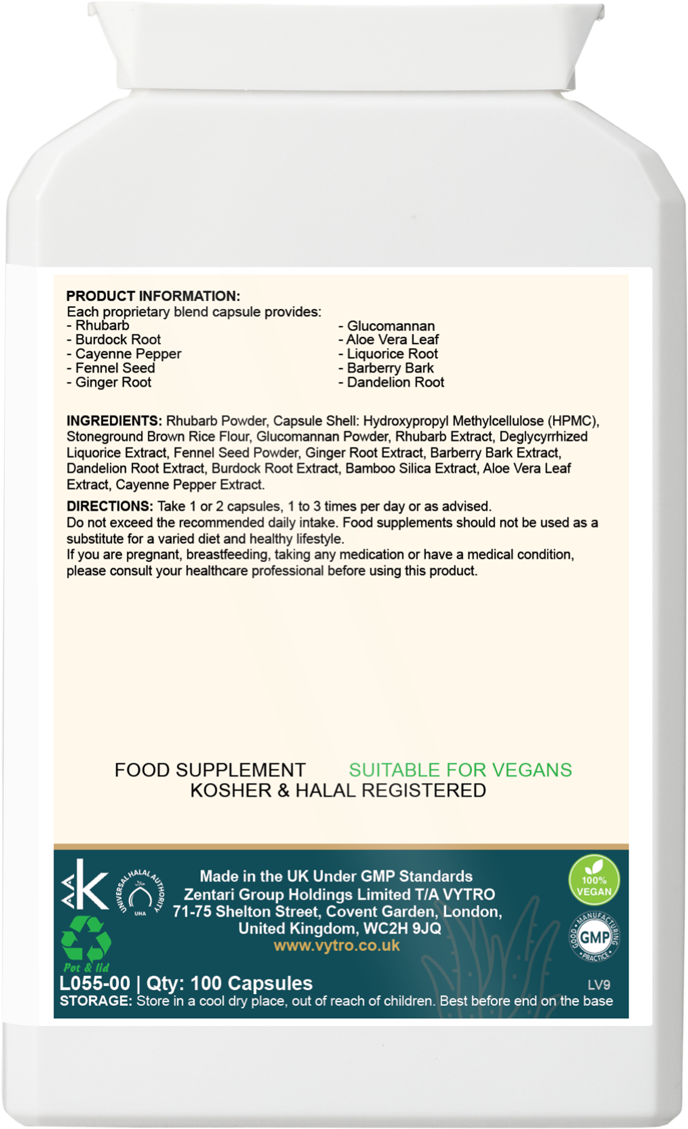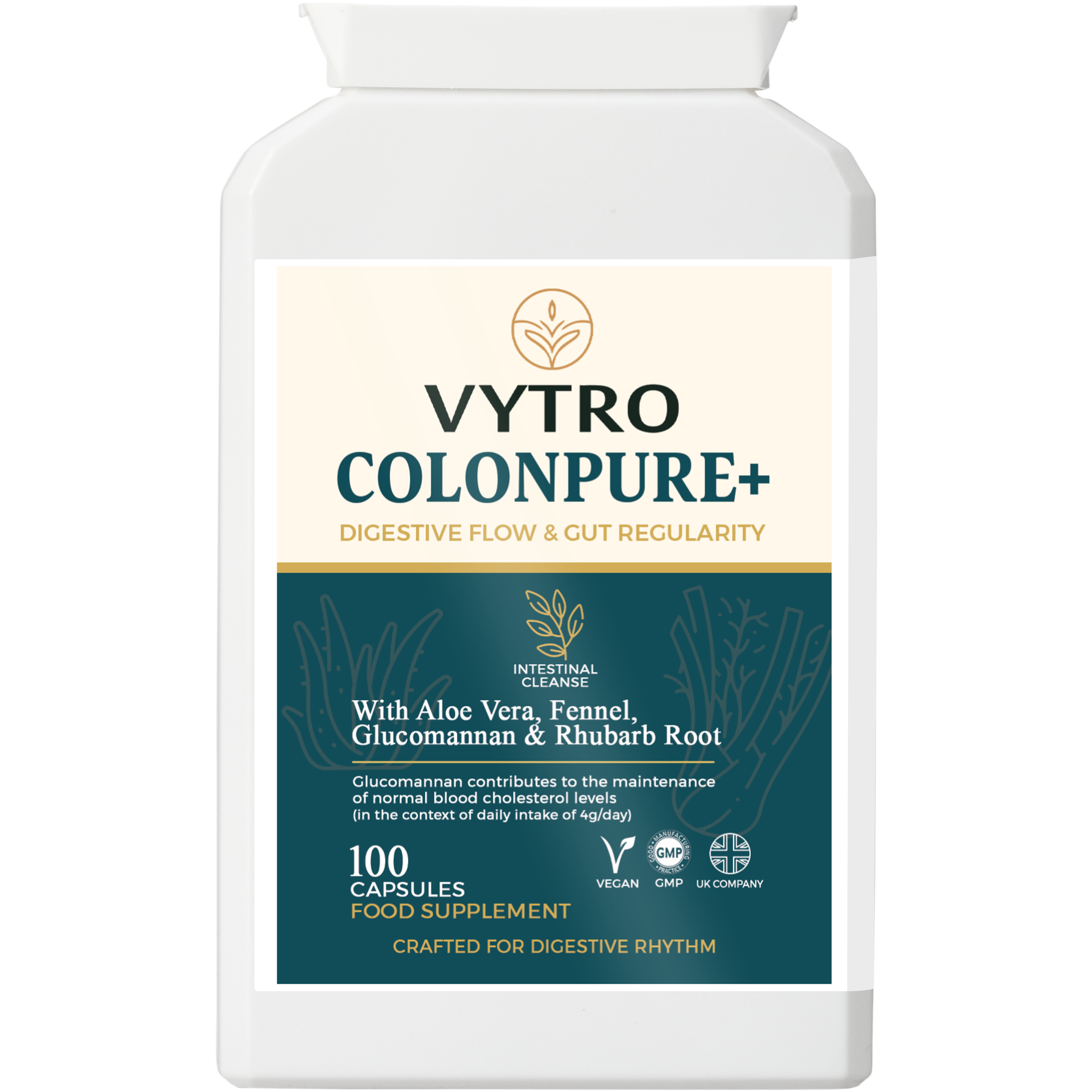 VYTRO COLONPURE+ – Herbal Colon Cleanse & Gut Support | Aloe Vera, Rhubarb & Probiotics