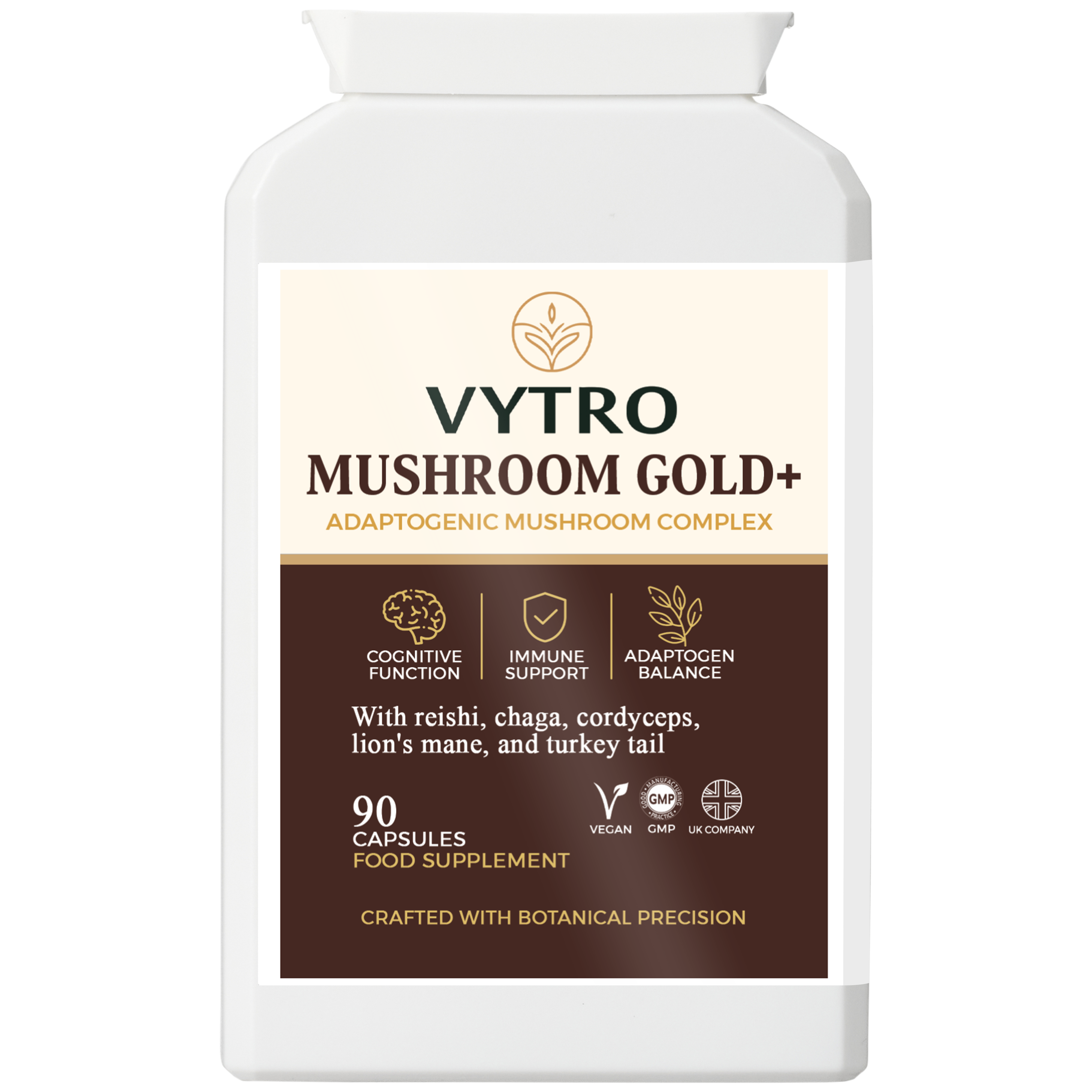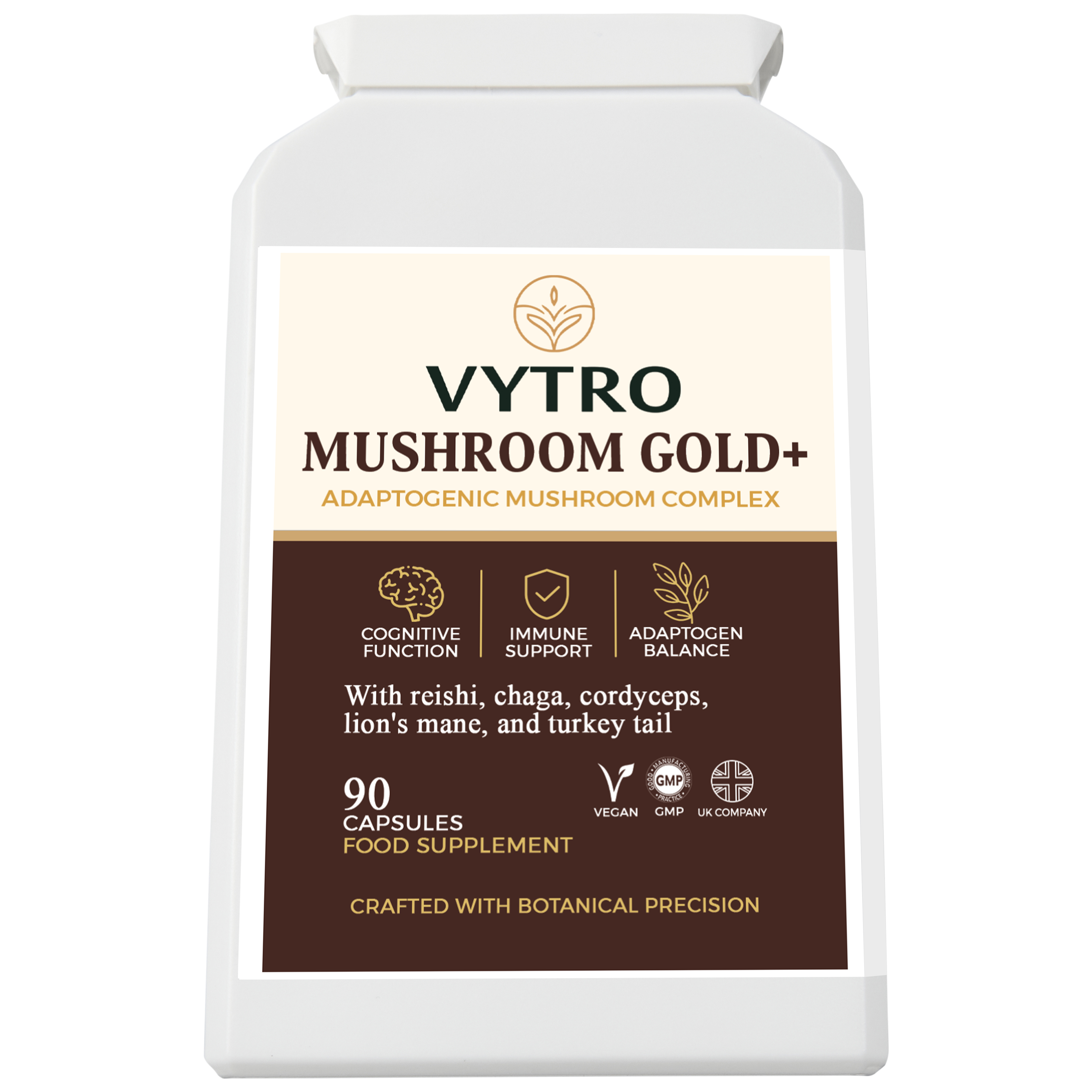 VYTRO MUSHROOM GOLD+ | Organic Adaptogenic Mushroom Complex – Reishi, Lion’s Mane, Chaga, Shiitake & Maitake for Immune, Brain & Energy Support (90...