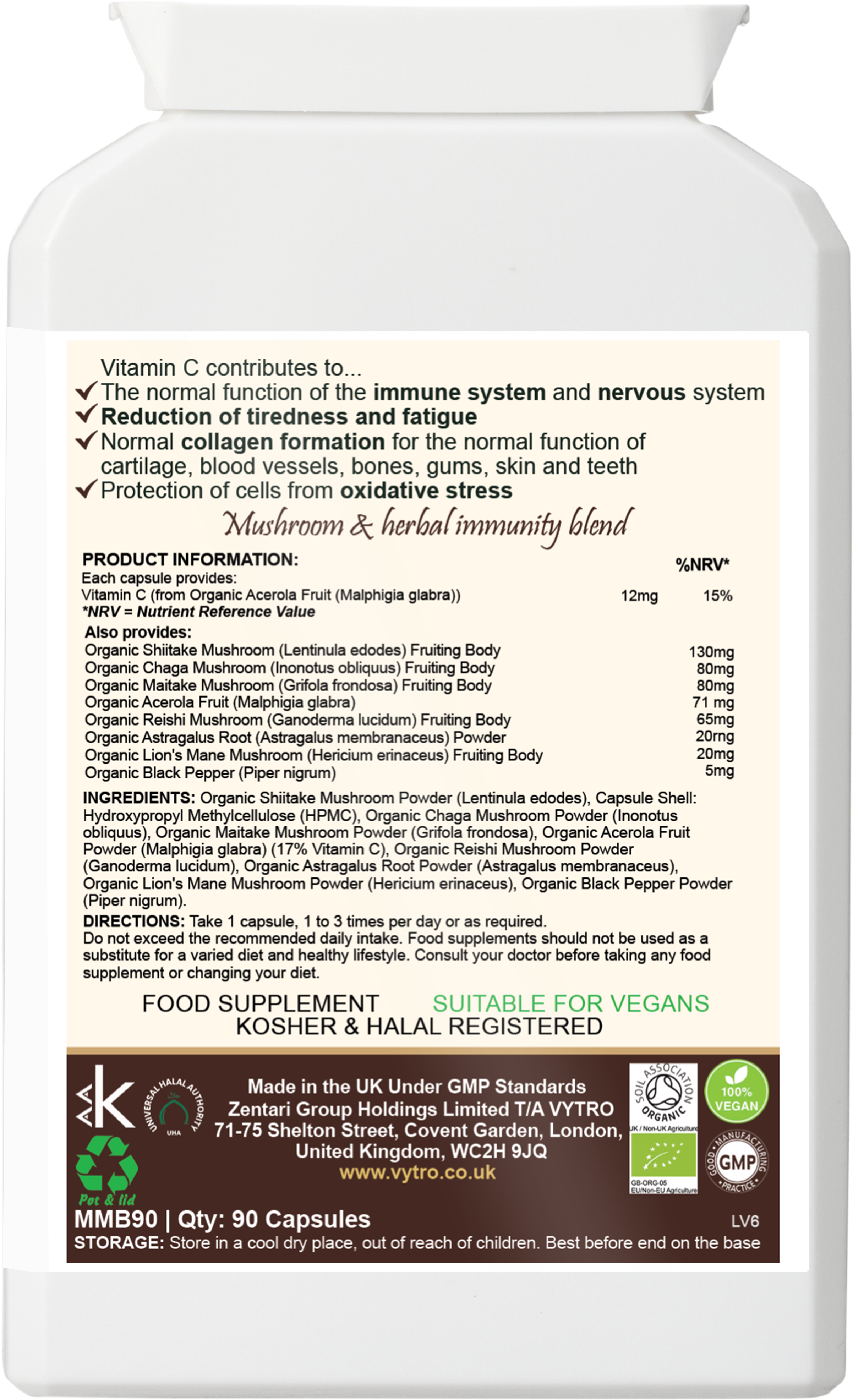 Sustainably grown and Soil Association Certified Organic, every capsule provides clean, potent nutrition with no artificial additives — crafted with VYTRO’s hallmark botanical precision.