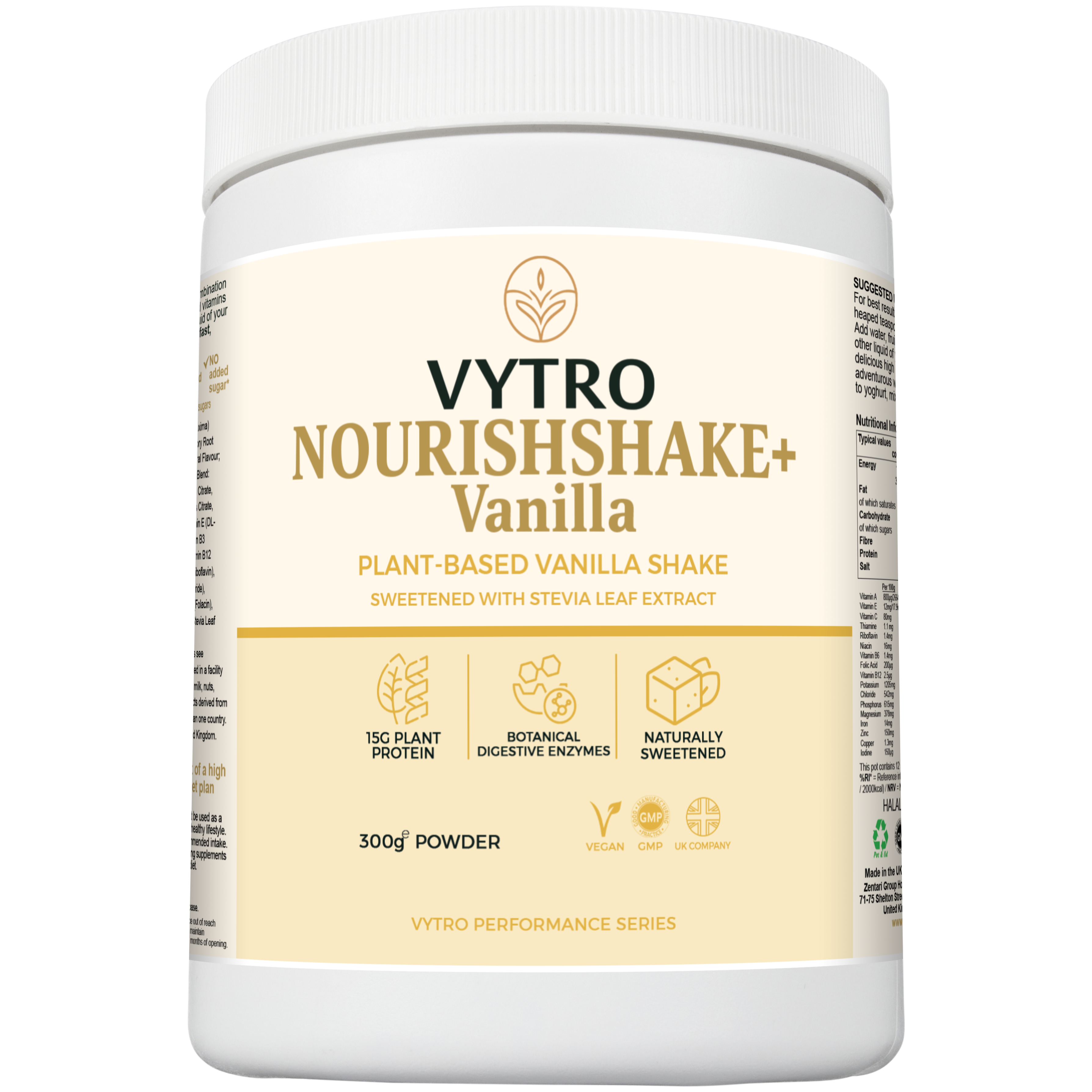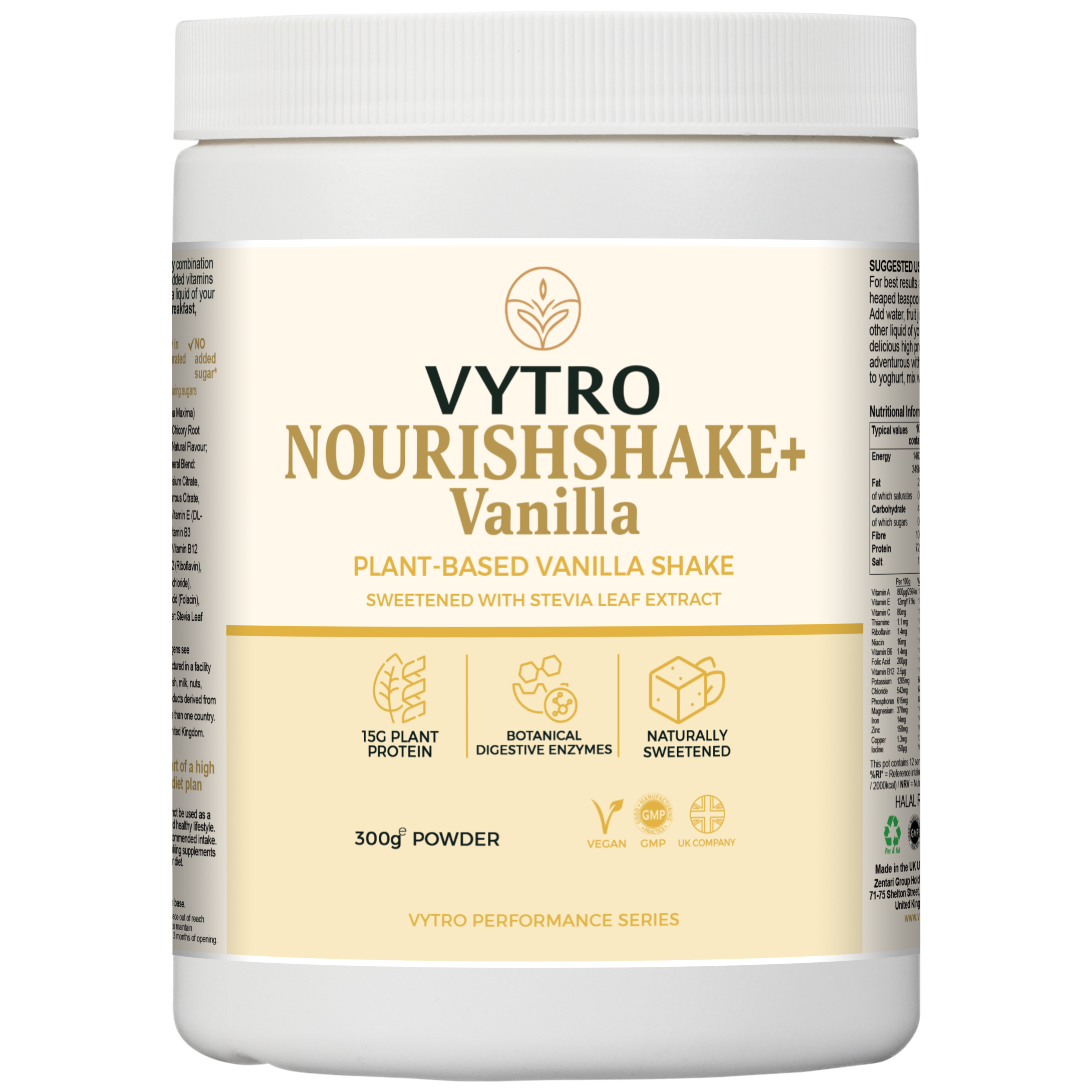 VYTRO NOURISHSHAKE+ Vanilla – Plant-Based Protein Shake | 15g Plant Protein, Digestive Enzymes & Stevia | Vegan High-Protein Meal Support